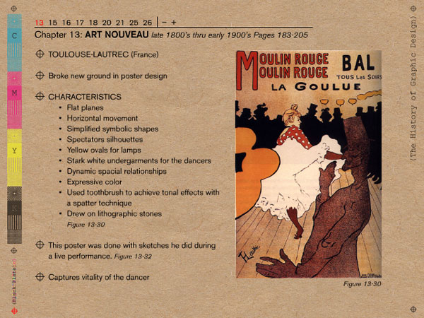 It corresponds with Phillip Meggs' book A History of Graphic Design and includes images and video.